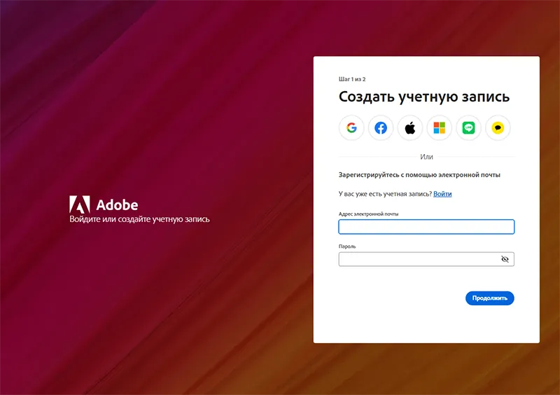 Чтобы активировать подписку или программы из пакета Adobe Creative Cloud, необходимо создать собственную учётную запись Adobe ID. Процесс займёт всего пару минут — следуйте инструкции ниже.