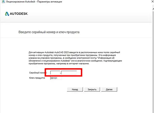 - Введите ключ активации, который был отправлен вам вместе с покупкой и нажмите далее