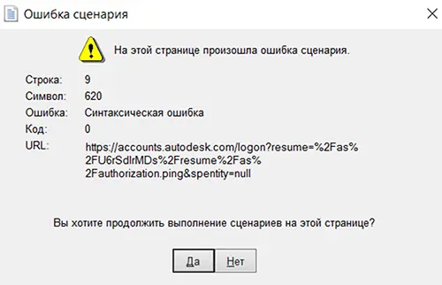- Если появится уведомление о сценарной ошибке, выбирайте вариант «Да», чтобы продолжить.